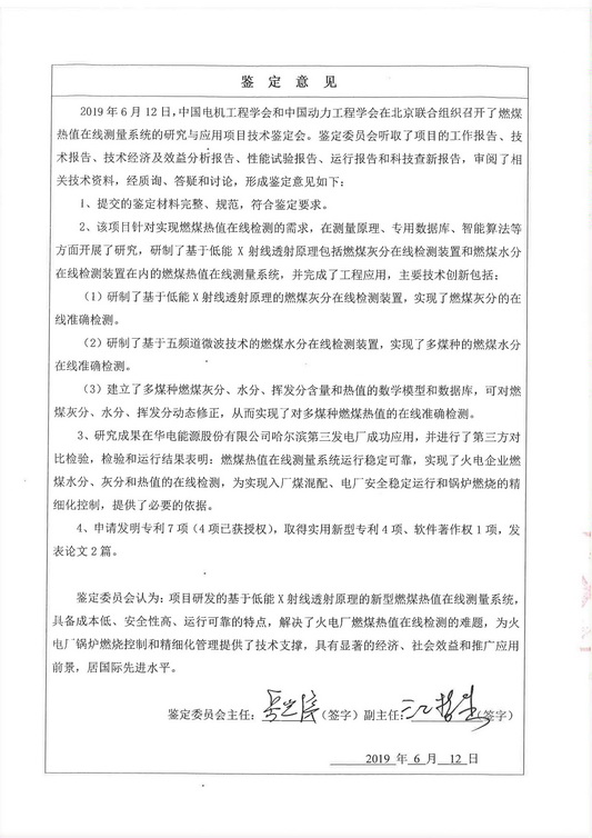 2019年6月12日,中國電機工程學(xué)會和中國動力工程學(xué)會在北京聯(lián)合組織召開了燃煤熱值在線測量系統(tǒng)的研究與應(yīng)用項目技術(shù)鑒定會。